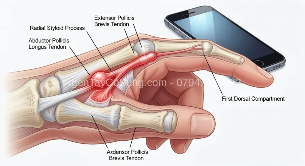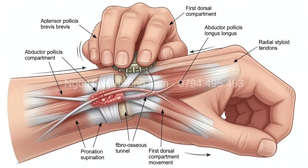 đau cổ tay khi vặn nắp chai Đau cổ tay khi vặn nắp chai là một trong những triệu chứng điển hình nhất của hội chứng de Quervain mà nhiều bạn gặp phải. Hành động tưởng chừng đơn giản này lại trở thành thử thách khó khăn khi gân ngón cái bị viêm và chèn…