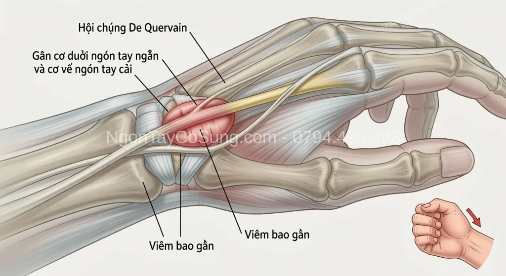 viêm bao gân cổ tay ngón cái Bạn có đang gặp tình trạng viêm bao gân cổ tay ngón cái, cảm thấy đau nhức vùng cổ tay khi cử động ngón cái? Đây là triệu chứng phổ biến mà nhiều người gặp phải, đặc biệt là các mẹ sau sinh hoặc những ai thường xuyên…
